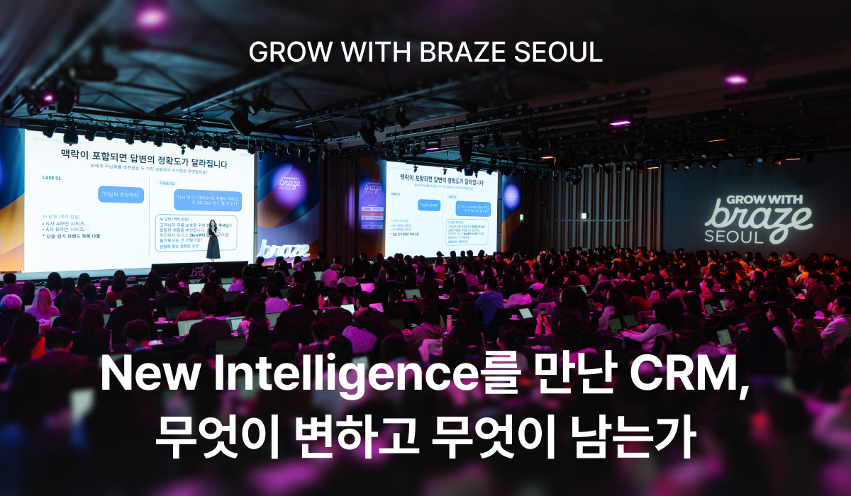 AI가 등장한 이후 CRM 마케팅 실행 방식이 재편되고 있고 있는데요. Grow with Braze Seoul 2026에서 AB180 오담인 님과 바비톡 박찬희 님이 공유한 AI CRM 세션의 핵심 내용을 요약해 드릴게요.