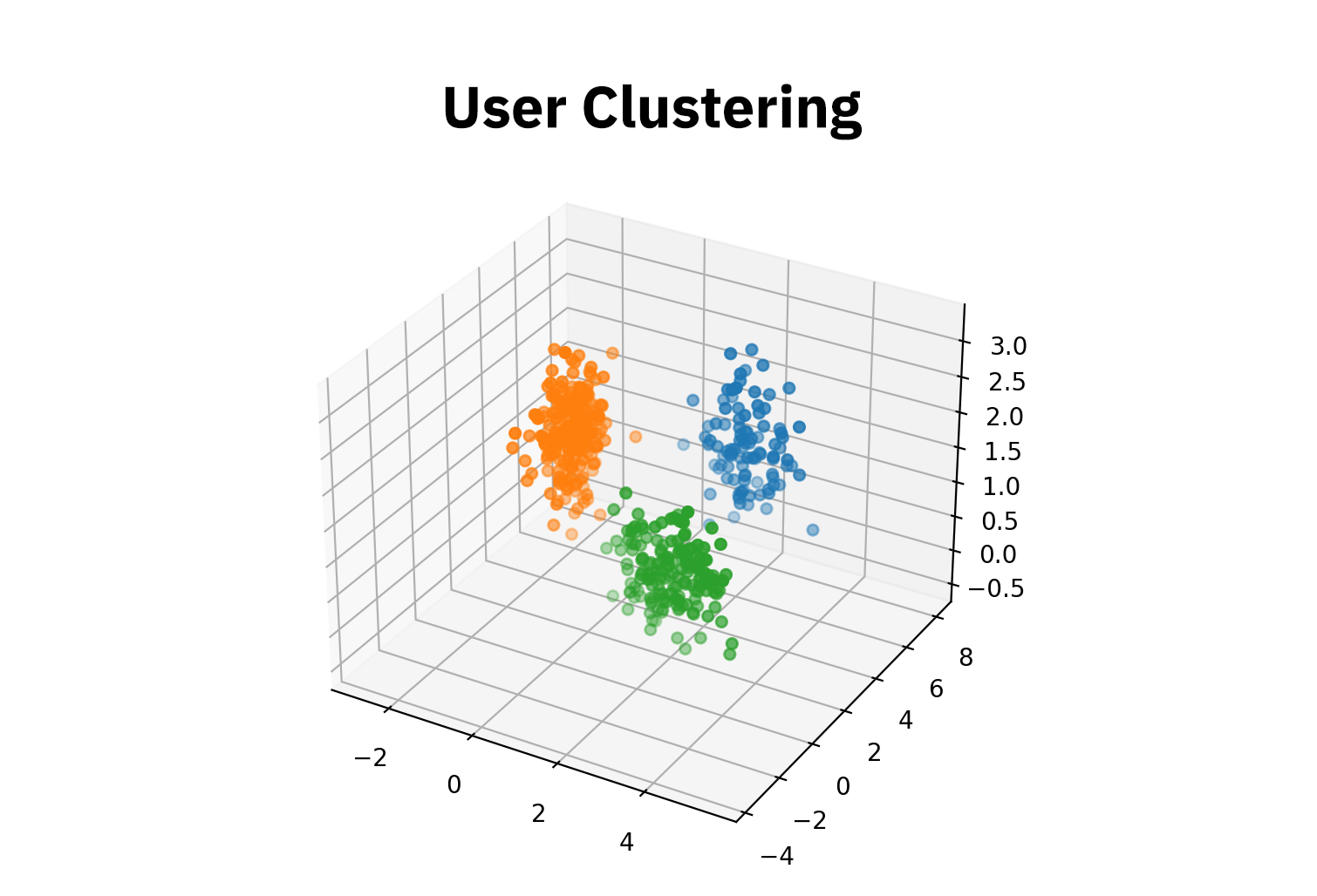 Amplitude의 Recommend는 K- 평균 클러스터링(K-means clustering)이라는 기술을 이용하여 비지도 학습을 합니다. 고객들이 로케일(locale) 및 플랫폼과 같은 유저의 속성들과 이벤트 데이터를 제공하면, Amplitude는 이 수집한 데이터를 유저 feature들로 처리합니다. K- 평균 클러스터링은 이 유저의 feature들을 가지고, 비슷한 값을 갖는 유저들을 묶어서 클러스터링 합니다. 예를 들어, 특정 이벤트의 빈도가 유사하거나, 유사한 속성을 갖는 경우가 될 수 있습니다.