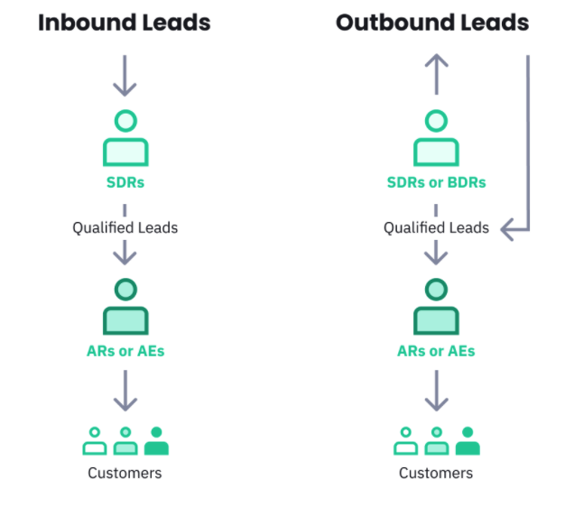 이때 Inbound Leads로 들어오는 고객의 대다수가 대기업이 아닌 중소기업과 스타트업인 경우가 많습니다. 그렇기 때문에, 리드가 들어오지 않은 타깃 대기업을 대상으로 아웃바운드 영업을 전개하는 포지션도 필요합니다. 이 포지션이 바로 EBR(Enterprise Business Representative), BDR(Business Development Representative)입니다.