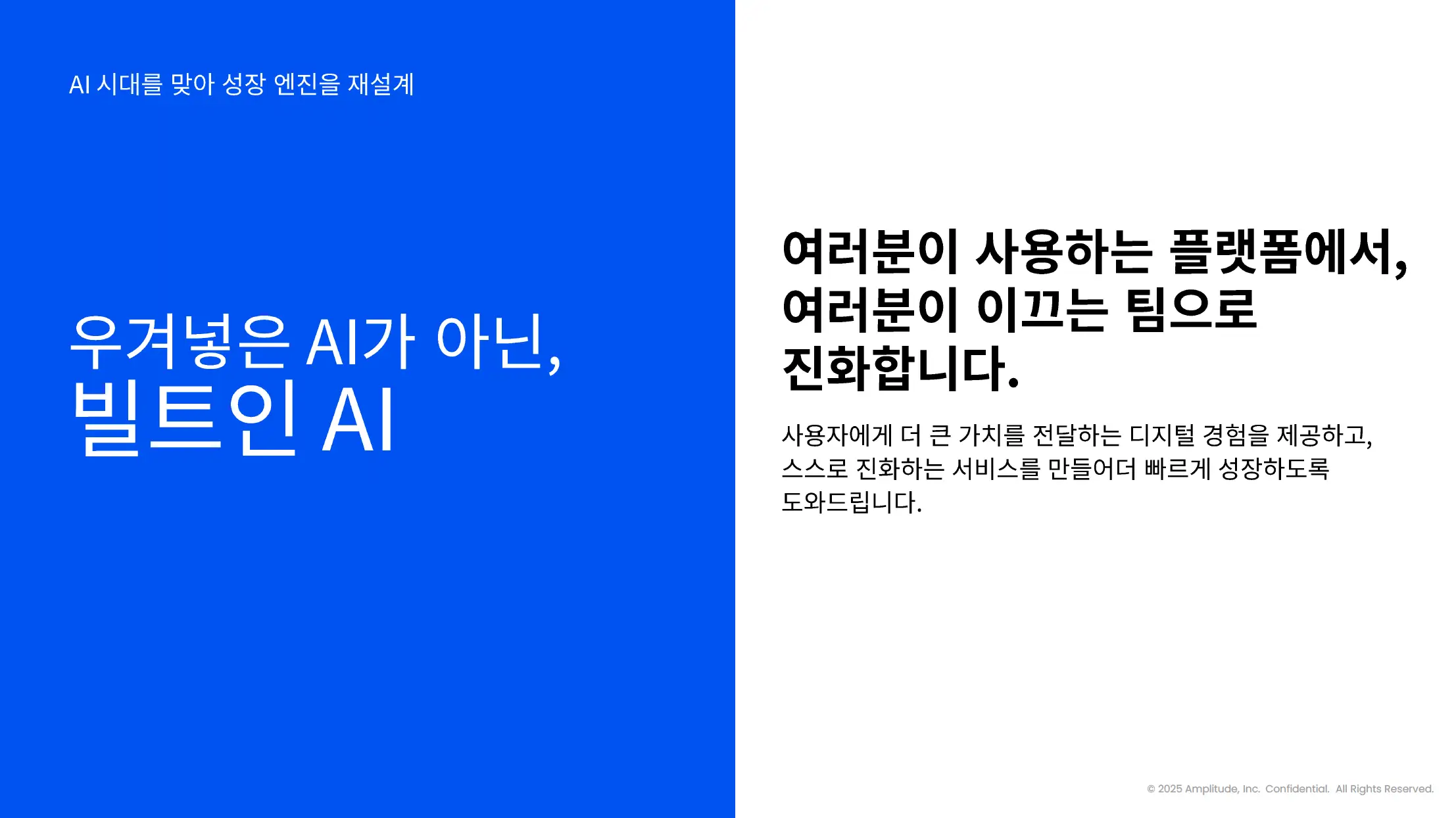 AI 시대에는 단순한 기능 추가만으로는 경쟁력을 확보할 수 없습니다. 앰플리튜드는 이 과제를 해결하기 위해 AI를 제품과 업무 흐름 전체에 빌트인 하는 전략을 선택했습니다.