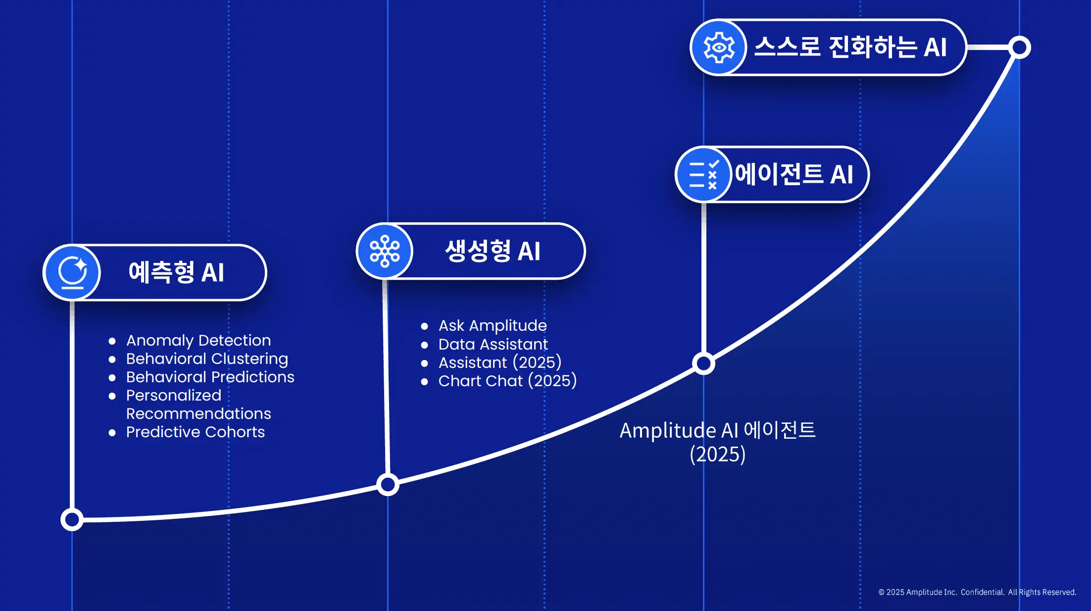 앰플리튜드는 ‘가속화’, ‘자동화’, ‘데이터 활용 방식의 근본적 변혁’이라는 3가지 축을 중심으로 플랫폼 전반에 빌트인 AI를 구현하고 있습니다.