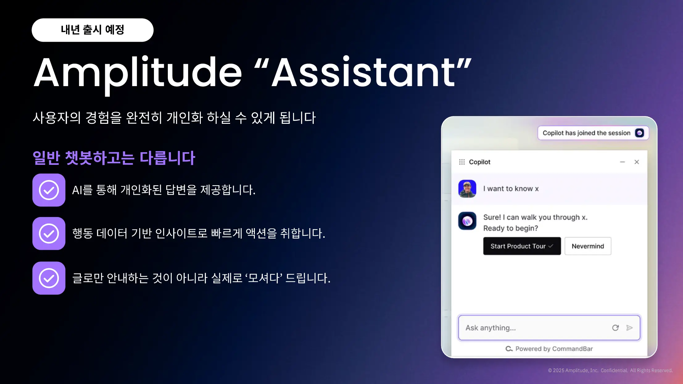 앰플리튜드는 내년, 사용자 인터페이스(UI) 안에서 직접 화면까지 안내해 주는 챗봇, 앰플리튜드 Assistant를 선보일 예정입니다.