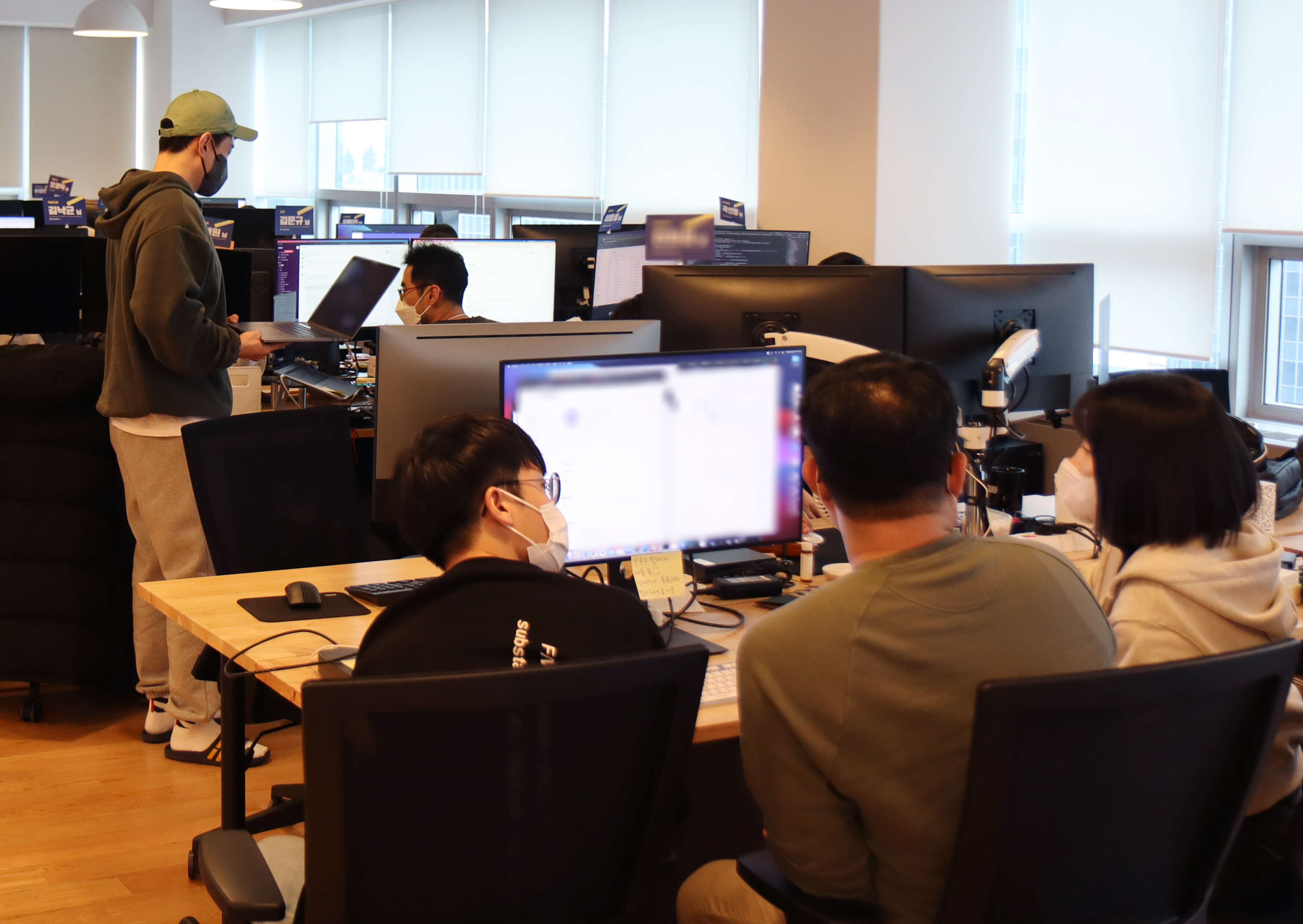 조직은 크게 두 가지 구조로 나눠져있습니다. 첫 번째로는, 각자 맡고 있는 업무 역할에 따른 팀으로, 마케팅팀, 지원팀, BX팀 등으로 나눠져 있습니다. 그리고 특정한 목표를 달성하기 위해 여러 팀의 구성원들이 하나로 모인 ‘스쿼드’가 있습니다. 저희가 최근에 오픈한 이사 청소 같은 경우에도, ‘이사 청소 스쿼드’가 새로 편성되어 운영하였습니다. 또한, 저희가 2022년부터 조금 더 집중하게 될 파트너 분들에 대한 관리도 스쿼드가 따로 편성되어 진행 중입니다.